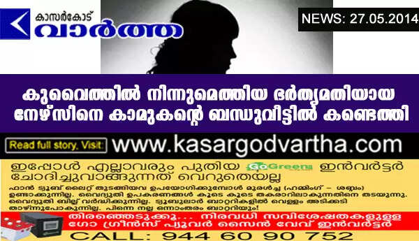 കുവൈത്തില് നിന്നുമെത്തിയ ഭര്തൃമതിയായ നേഴ്സിനെ കാമുകന്റെ ബന്ധുവീട്ടില് കണ്ടെത്തി