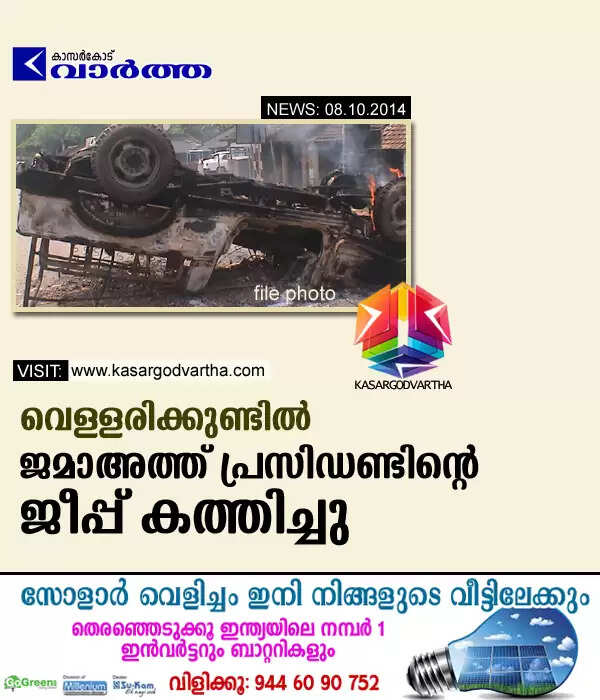 വെള്ളരിക്കുണ്ടില്‍ ജമാഅത്ത് പ്രസിഡണ്ടിന്റെ വീട്ടുമുറ്റത്ത് നിര്‍ത്തിയിട്ട ജീപ്പ് കത്തിച്ചു