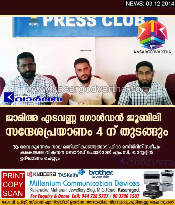 Keywords : Conference, Press meet, Kasaragod, Kerala, Kanhangad, Jamia Edavanna, Golden Jubilee.