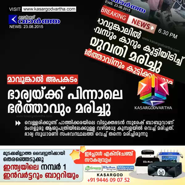 Keywords : Kanhangad, Mavungal, Accident, Death, Obituary, Husband, Wife, Bus, Car, Kasaragod, Kerala, Suresh Babu, Sudha Mani.