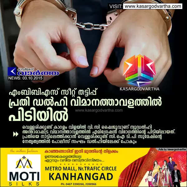 എംബിബിഎസ് സീറ്റ് തട്ടിപ്പ്: പ്രതി ഡല്ഹി വിമാനത്താവളത്തില് പിടിയില്