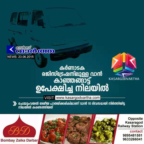 കര്‍ണാടക രജിസ്‌ട്രേഷനിലുള്ള വാന്‍ കാഞ്ഞങ്ങാട്ട് ഉപേക്ഷിച്ച നിലയില്‍