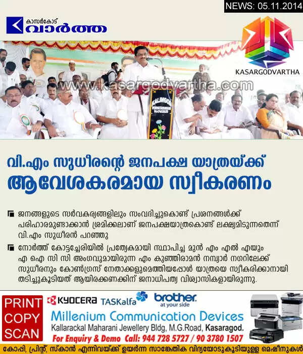 Keywords : VM Sudheeran, Kerala, Kanhangad, Trikaripur, Chattanchal, Congress, Janapaksha Yathra, Reception.