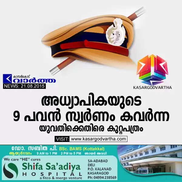 അധ്യാപികയുടെ 9 പവന് സ്വര്ണം കവര്ന്ന യുവതിക്കെതിരെ കുറ്റപത്രം