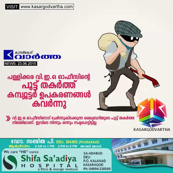 Keywords : Bekal, Pallikara, Robbery, Kanhangad, Village Office, Panchayath, CPU, Computer, Robbery in VEO office.
