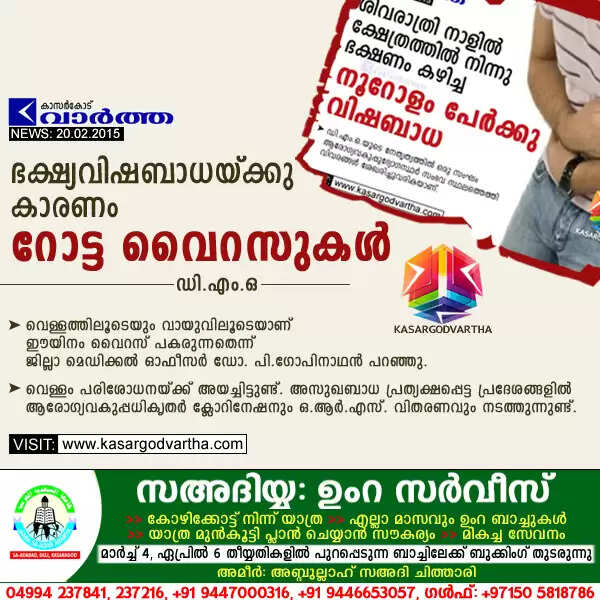 ഭക്ഷ്യവിഷബാധയ്ക്കു കാരണം റോട്ട വൈറസുകള്‍: ഡി.എം.ഒ.