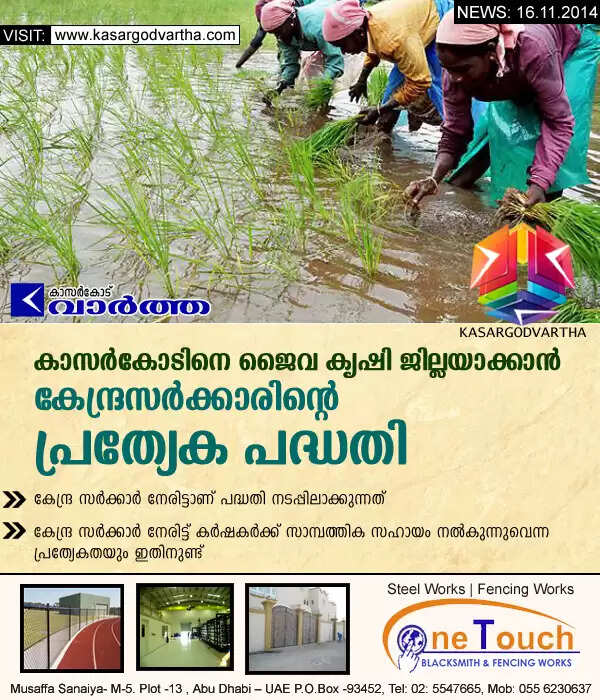 കാസര്കോടിനെ ജൈവ കൃഷി ജില്ലയാക്കാന് കേന്ദ്രസര്ക്കാര് പ്രത്യേക പദ്ധതി