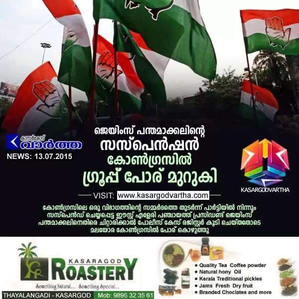 Keywords : Kanhangad, Kerala, Congress, Suspension, Kasaragod, James Pandamakkal.