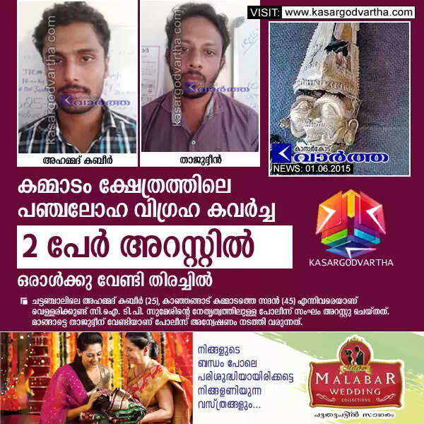 കമ്മാടം ക്ഷേത്രത്തിലെ പഞ്ചലോഹ വിഗ്രഹ കവര്ച്ച; 2 പേര് അറസ്റ്റില്, ഒരാള്ക്കു വേണ്ടി തിരച്ചില്