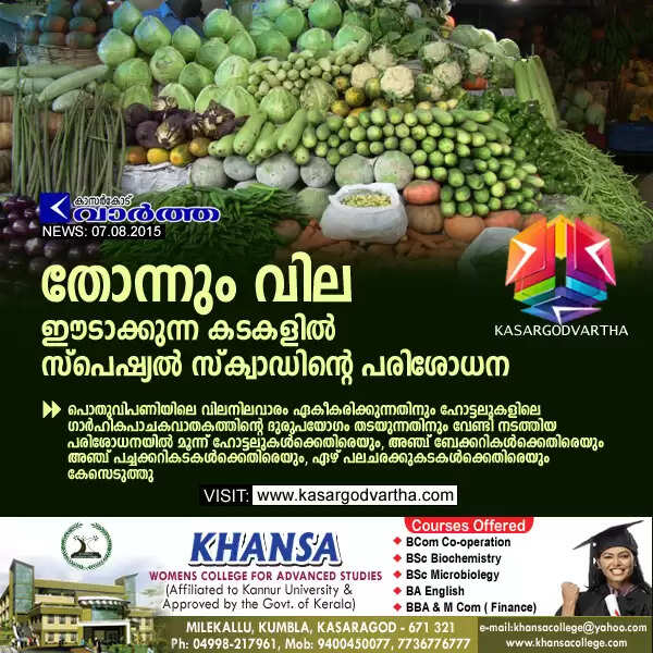 തോന്നും വില ഈടാക്കുന്ന കടകളില് സ്പെഷ്യല് സ്ക്വാഡിന്റെ പരിശോധന