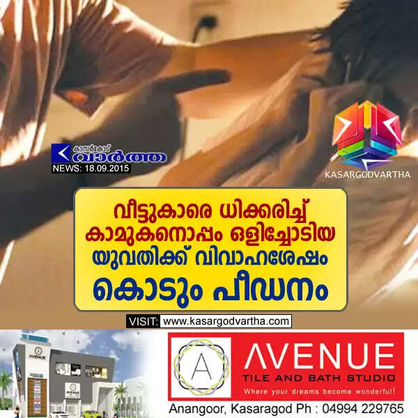 കാഞ്ഞങ്ങാട്: (www.kasargodvartha.com 18/09/2015) വീട്ടുകാരെ ധിക്കരിച്ച് കാമുകനൊപ്പം ഒളിച്ചോടി വിവാഹിതയായ യുവതിക്ക് പിന്നീട് നേരിടേണ്ടിവന്നത് കൊടും പീഡനങ്ങളുടെ നാളുകള് പീഡനം സഹിക്കാനാകാതെ സ്വന്തം വീട്ടിലേക്ക് തിരിച്ചുവന്നയുവതി പിന്നീട് പോലീസില് പരാതി നല്കി. കൂടുതല് സ്ത്രീധനമാവശ്യപ്പെട്ട് മാനസീകമായും ശാരീരികമായും പീഡിപ്പിച്ചുവെന്ന യുവതിയുടെ പരാതിയില് കേസെടുത്ത പോലീസ് അന്വേഷണം പൂര്ത്തിയാക്കിയ ശേഷം പിന്നീട് കോടതിയില് കുറ്റപത്രം സമര്പ്പിക്കുകയും ചെയ്തു.
