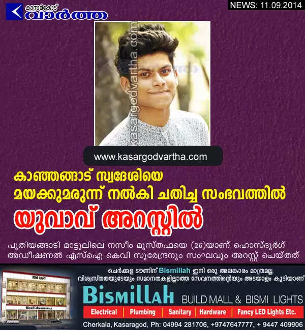 കാഞ്ഞങ്ങാട് സ്വദേശിയെ മയക്കുമരുന്ന് നല്കി ചതിച്ച സംഭവത്തില് യുവാവ് അറസ്റ്റില്