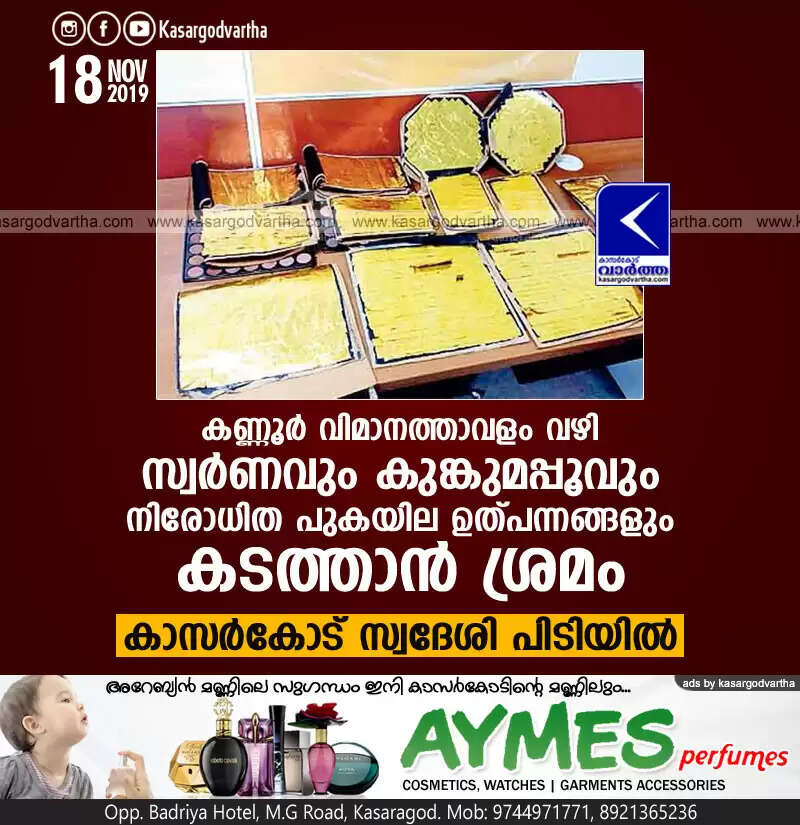കണ്ണൂര് വിമാനത്താവളം വഴി സ്വര്ണവും കുങ്കുമപ്പൂവും നിരോധിത പുകയില ഉത്പന്നങ്ങളും കടത്താന് ശ്രമം; കാസര്കോട് സ്വദേശി പിടിയില്