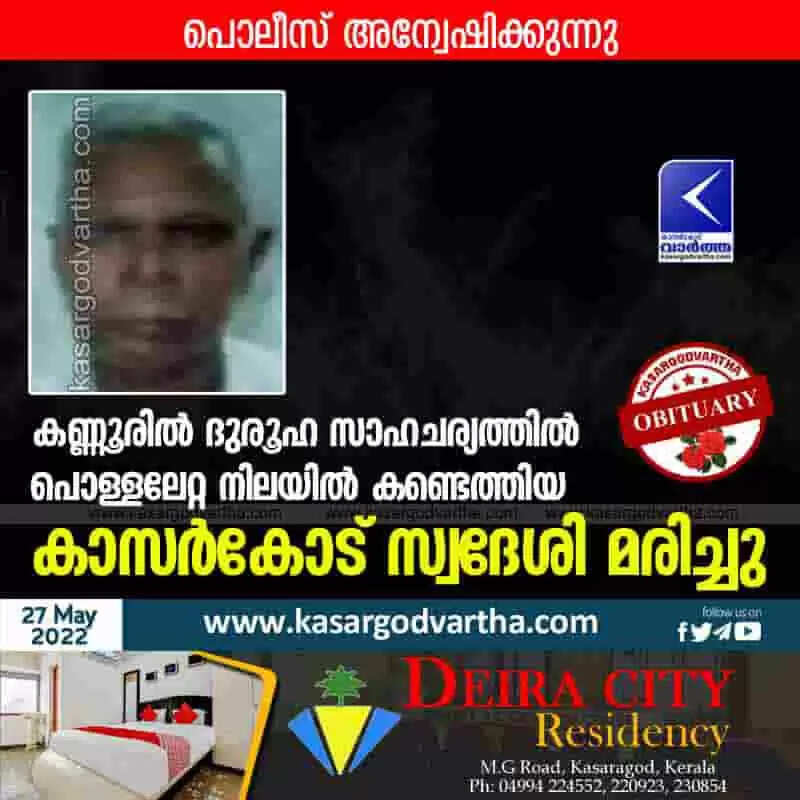 Found burnt | കണ്ണൂരിൽ ദുരൂഹ സാഹചര്യത്തിൽ പൊള്ളലേറ്റ നിലയിൽ കണ്ടെത്തിയ കാസർകോട് സ്വദേശി മരിച്ചു