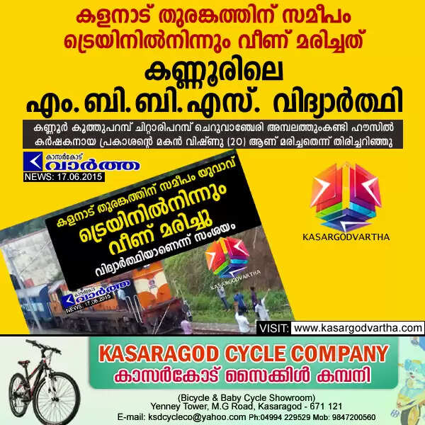 Keywords: Student, Obituary, Railway-track, Kasaragod, Kerala, Engineering Student, Vishnu, MBBS student found dead in railway track.