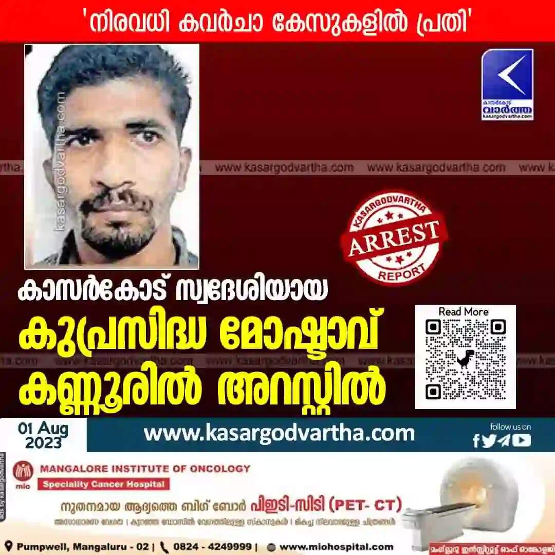 Arrested | കാസര്‍കോട് സ്വദേശിയായ കുപ്രസിദ്ധ മോഷ്ടാവ് കണ്ണൂരില്‍ അറസ്റ്റില്‍