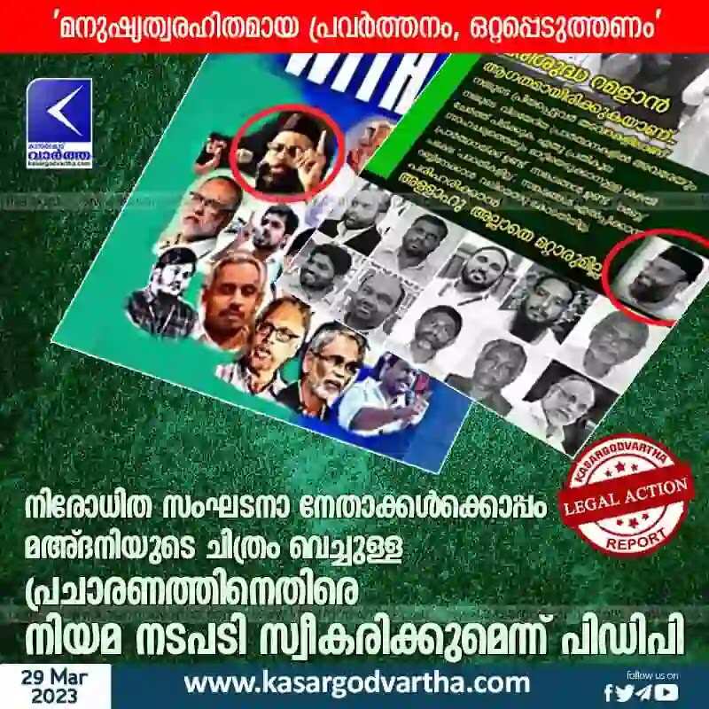 Keywords: Kannur, Kerala, News, PDP, Campaign, Abdul Nasar Madani, Leader, Ban, Arrest, Jail, Court, Press Meet, Politics, Political-News, Top-Headlines, PDP will take legal action against campaign with pictures of Ma'adani along with leaders of banned organizations.