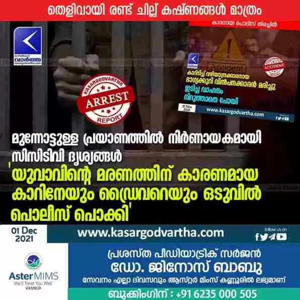Keywords: News, Kerala, Kasaragod, Kanhangad, Top-Headlines, Arrest, Case, Police, Jail, Driver, National highway, Road, Accidental Death, Hospital, Kannur, District, Police arrested car driver who caused young man's death.