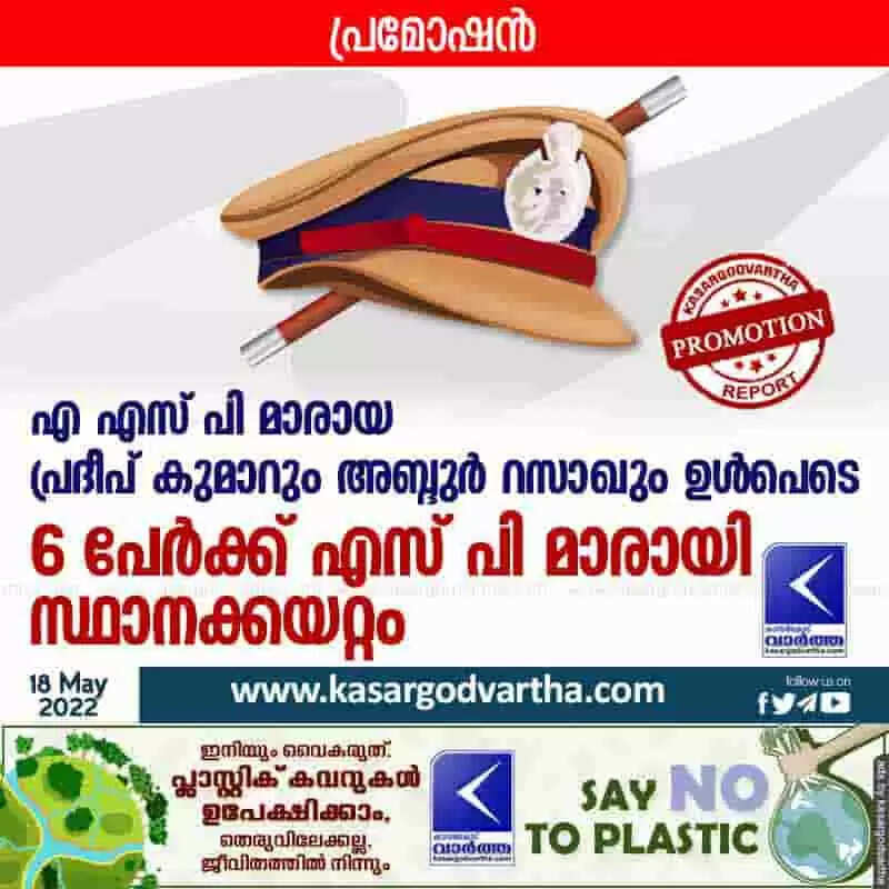 Keywords: Six promoted to ASPs, including Pradeep Kumar and Abdur Razzaq, Kasaragod, News, Top-Headlines, Police, Kerala.