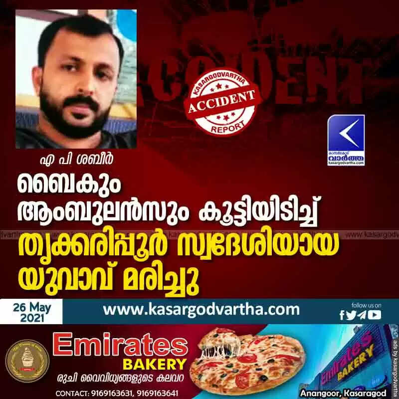 ബൈകും ആംബുലൻസും കൂട്ടിയിടിച്ച് തൃക്കരിപ്പൂർ സ്വദേശിയായ യുവാവ് മരിച്ചു