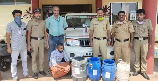 Keywords: Kasaragod, Kerala, news, Neeleswaram, 135 ltr wash seized by Excise; accused remanded