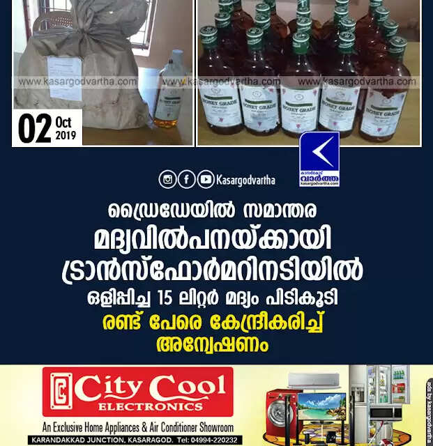 Keywords:  Kasaragod, Kerala, news, Transformer, Liquor, Investigation, 15 ltr liquor seized