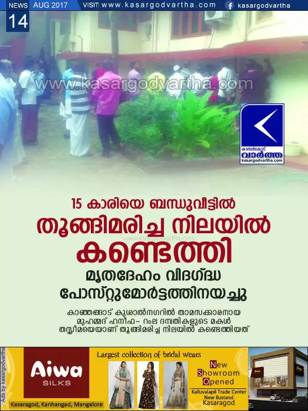 15 കാരിയെ ബന്ധുവീട്ടില് തൂങ്ങിമരിച്ച നിലയില് കണ്ടെത്തി; മൃതദേഹം വിദഗ്ദ്ധ പോസ്റ്റുമോര്ട്ടത്തിനയച്ചു