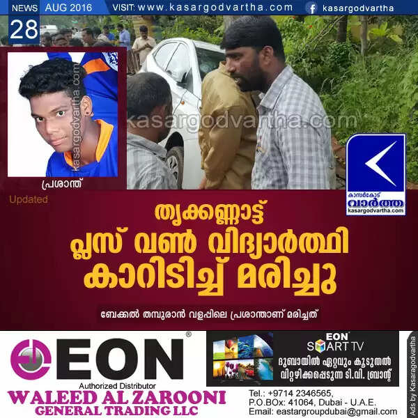 Keywords : Bekal, Trikkanad, Accident, Death, School, Student, Injured, Hospital, Kasaragod, Udma, Prashanth, 16 year old boy dies in accident.