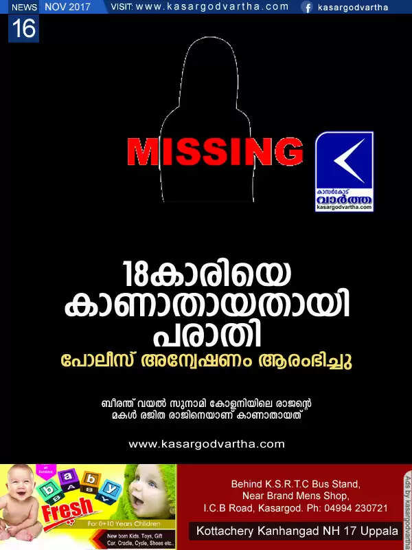 Keywords: Kasaragod, Kerala, News, Missing, Police, Investigation, Case, Complaint,18 year old goes missing; Police investigation started.