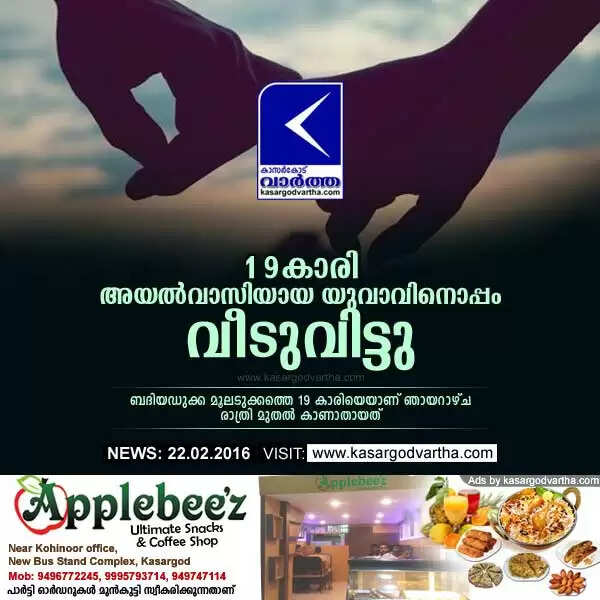 19കാരി അയല്‍വാസിയായ യുവാവിനൊപ്പം വീടുവിട്ടു