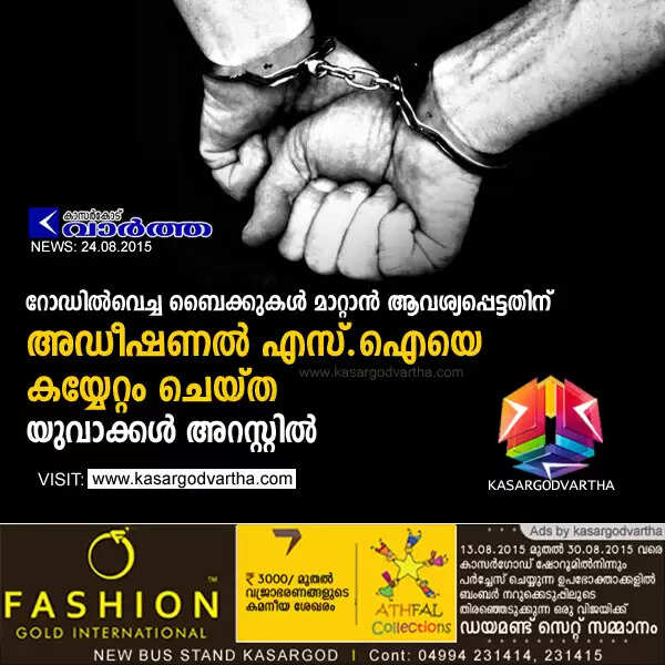റോഡില്‍വെച്ച ബൈക്കുകള്‍ മാറ്റാന്‍ ആവശ്യപ്പെട്ടതിന് അഡീഷണല്‍ എസ്.ഐയെ കയ്യേറ്റം ചെയ്ത യുവാക്കള്‍ അറസ്റ്റില്‍