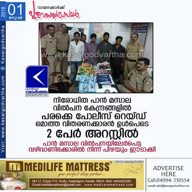 Keywords: Kasaragod, Kerala, News, Police, Raid, Arrest, Fine,2 arrested with Panmasala.