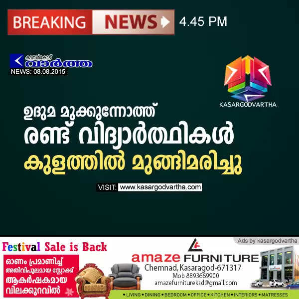 ഉദുമ മുക്കുന്നോത്ത് 2 വിദ്യാര്‍ത്ഥികള്‍ കുളത്തില്‍ മുങ്ങി മരിച്ചു