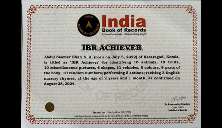 Talent | 2 വയസിൽ ഇൻഡ്യ ബുക് ഓഫ് റെകോർഡ്സിൽ ഇടം പിടിച്ച് കാസർകോട്ടെ കൊച്ചുമിടുക്കൻ അബ്ദുൽ സാമർ ശാൻ