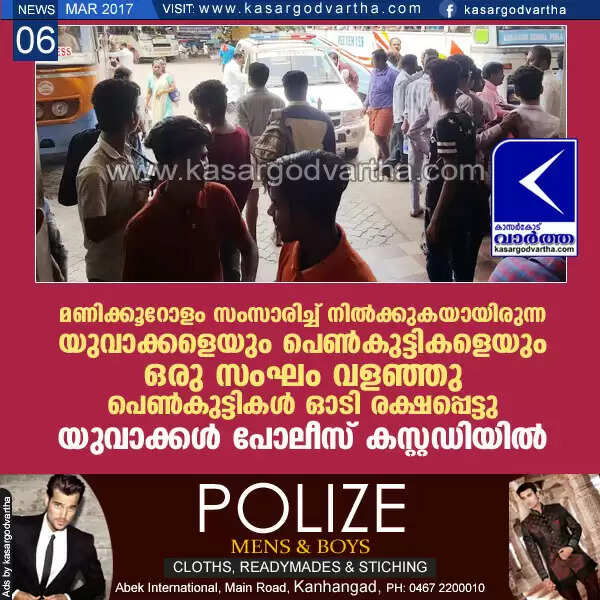 മണിക്കൂറോളം സംസാരിച്ച് നില്ക്കുകയായിരുന്ന യുവാക്കളെയും പെണ്കുട്ടികളെയും ഒരു സംഘം വളഞ്ഞു; പെണ്കുട്ടികള് ഓടി രക്ഷപ്പെട്ടു. യുവാക്കള് പോലീസ് കസ്റ്റഡിയില്