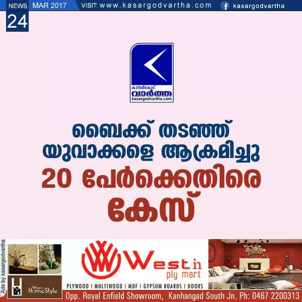 Keywords: Kasaragod, Bike, Assault, Case, Police, Complaint, Loss, Case against 20 for assaulting bike rider.