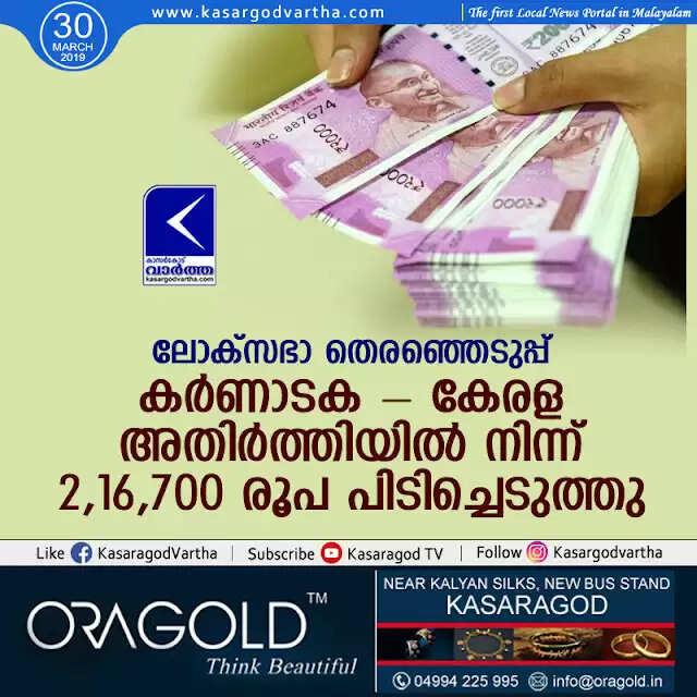 ലോക്‌സഭാ തെരഞ്ഞെടുപ്പ്; കര്‍ണാടക - കേരള അതിര്‍ത്തിയില്‍ നിന്ന് 2,16,700 രൂപ പിടിച്ചെടുത്തു