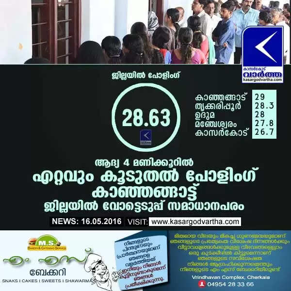 Keywords : Kasaragod, Election 2016, Kanhangad, Udma, Trikaripur, Manjeshwaram, Polling, 28.63 percent polled in Kasargod.