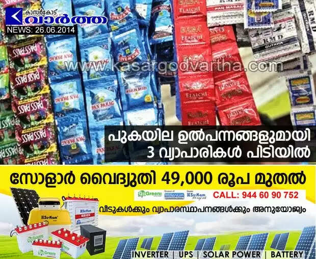 പുകയില ഉല്പന്നങ്ങളുമായി 3 വ്യാപാരികള് പിടിയില്