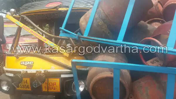 ഗ്യാസ് സിലിണ്ടര് കയറ്റിപോകുകയായിരുന്ന ലോറിയും കാറും കൂട്ടിയിടിച്ചു, നിയന്ത്രണം വിട്ട ലോറി ഓട്ടോയിലും കണ്ടെയ്നര് ലോറിയിലും ഇടിച്ചു മറിഞ്ഞു രണ്ടു പേര്ക്ക് പരിക്ക്