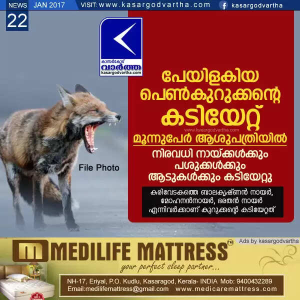 Keywords: Kasaragod, Kerala, Attack, Injured, hospital, Kuttikol, 3 injured in fox attack.