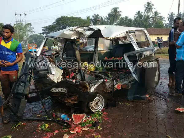 ഞായറാഴ്ച രാവിലെ കുമ്പള നിത്യാനാന്ദ ക്ഷേത്രത്തിന്റെ സമീപത്താണ് അപകടമുണ്ടായത്. തണ്ണിമത്തനുമായി കാസര്കോട് ഭാഗത്തേക്ക് പോകുകയായിരുന്ന ഓംനി വാനും കാസര്കോട് നിന്ന് മംഗളൂരു ഭാഗത്തേക്ക് പോകുകയായിരുന്ന കര്ണാടക കെ.എസ്.ആര്.ടി.സി. ബസുമാണ് കൂട്ടിയിടിച്ചത്. ഓംനി വാനില് കുടുങ്ങിയവരെ വാന് പൊളിച്ചുമാറ്റിയാണ് നാട്ടുക്കാര് പുറത്തെടുത്തത്.