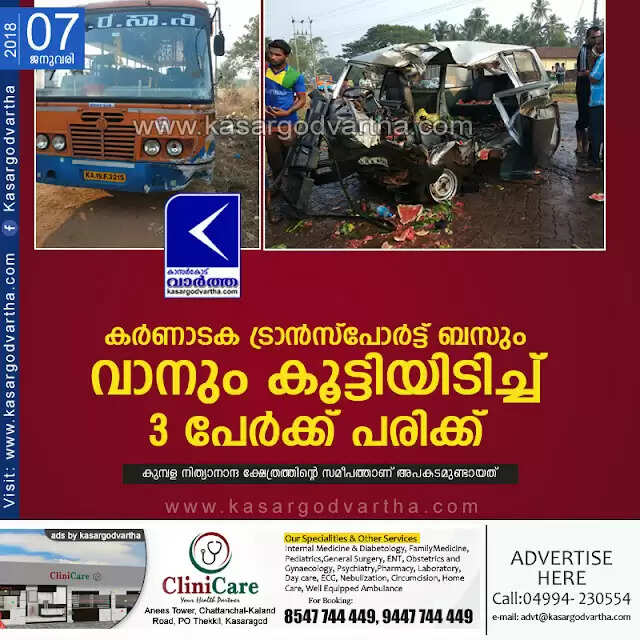 കര്ണാടക ട്രാന്സ്പോര്ട്ട് ബസും വാനും കൂട്ടിയിടിച്ച് 3 പേര്ക്ക് പരിക്ക്