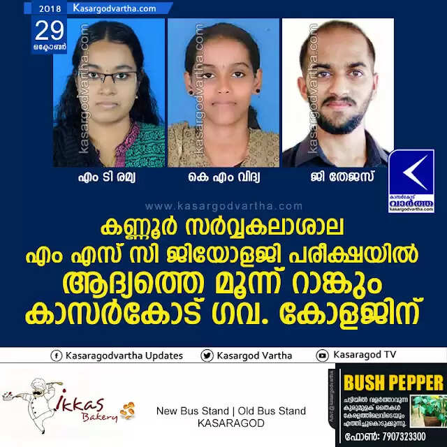 Keywords: Kasaragod, Govt. College, Rank, News, MSc geology rank, 1st and 2nd Rnk, 3rd Rank, 3 Rank for Govt. College Kasaragod