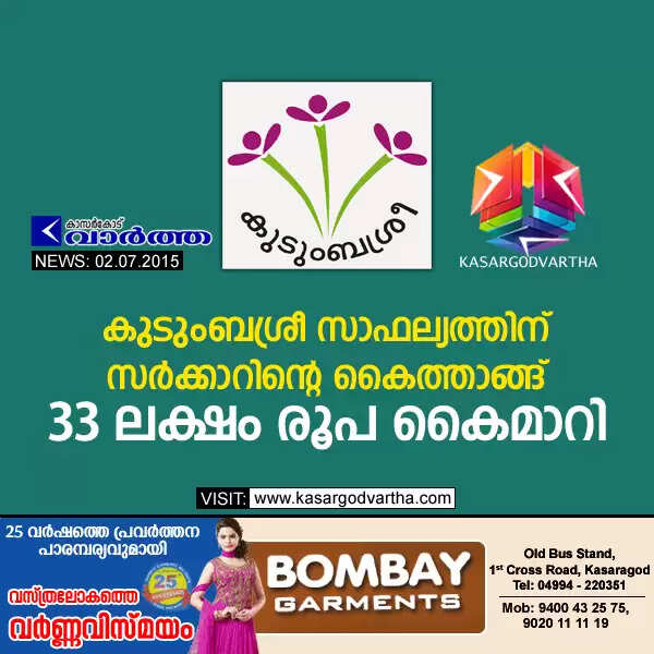 Keywords: Kasaragod, Kerala, Kudumbasree, NRLM project, 33 Lac help for Kudumbasree, Bombay Garments.