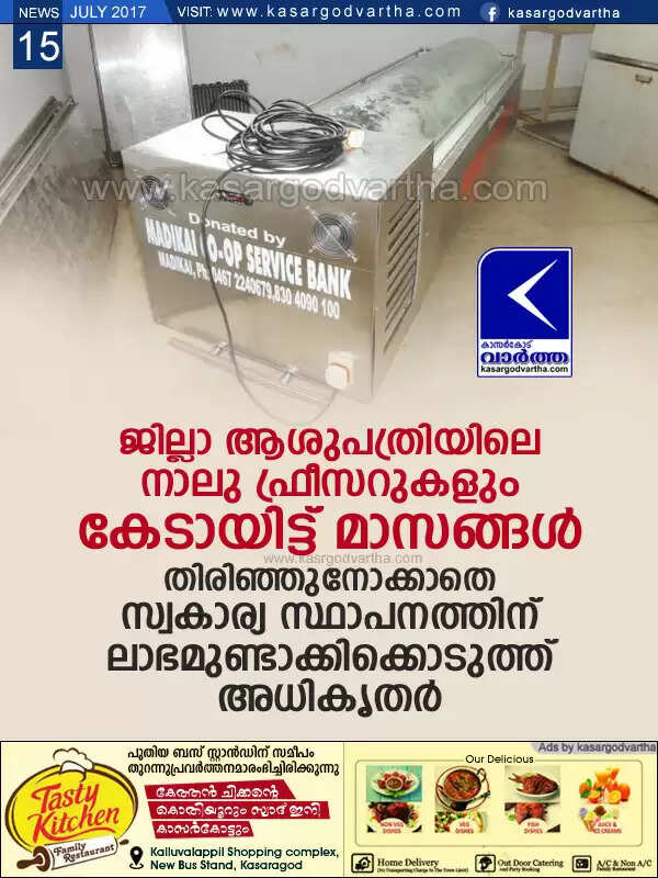 Keywords: Kasaragod, Kerala, Kanhangad, news, hospital, complaint, Freezer, 4 Freezer of District hospital damaged