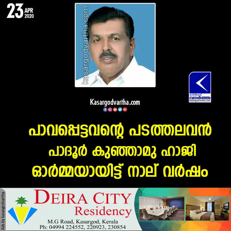 പാവപ്പെട്ടവന്റെ പടത്തലവന് പാദൂര് കുഞ്ഞാമു ഹാജി ഓര്മ്മയായിട്ട് നാല് വര്ഷം