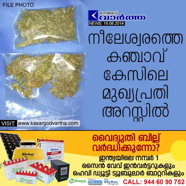 നീലേശ്വരത്തെ കഞ്ചാവ് കേസിലെ മുഖ്യപ്രതി അറസ്റ്റില്