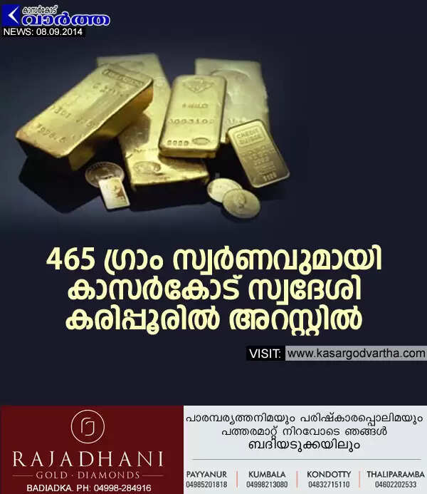 465 ഗ്രാം സ്വര്ണവുമായി കാസര്കോട് സ്വദേശി കരിപ്പൂരില് അറസ്റ്റില്