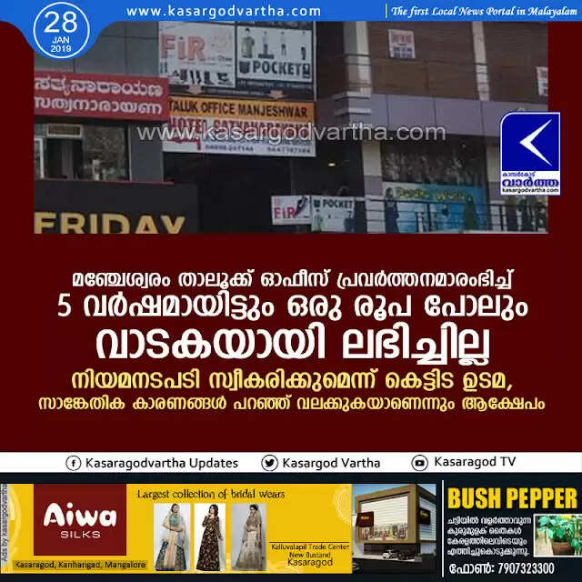 Keywords: Manjeshwaram, News, Kasaragod, Rent, Taluk office, 5 years of Manjeshwaram Taluk office; Building owner did not get any amount of Rent